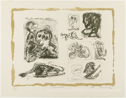 Wir bieten Ihnen eine handgefertigte Reproduktion auf Leinwand des berühmten Kunstwerks 'Die Nacht wird ruhig sein (La nuit sera calme)' von Pierre Alechinsky, aus dem Reproduktionsmuseum.