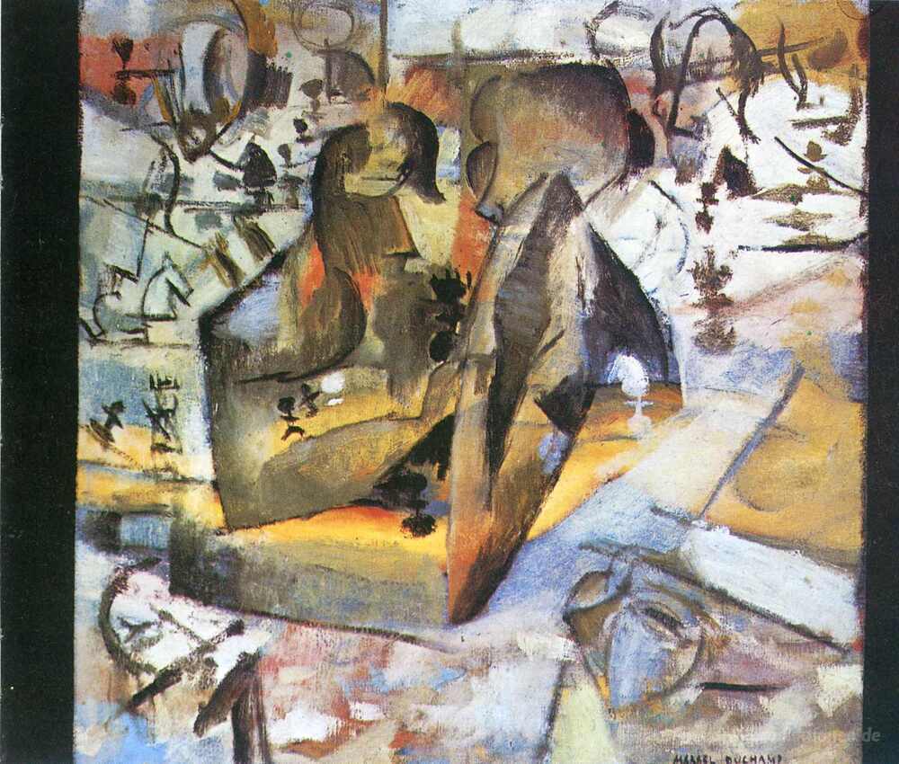 Wir bieten Ihnen eine handgefertigte Reproduktion auf Leinwand des berühmten Kunstwerks 'Die Schach-Spieler' von Marcel Duchamp, aus dem Reproduktionsmuseum.