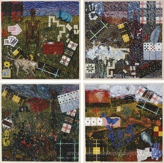 Wir bieten Ihnen eine handgefertigte Reproduktion auf Leinwand des berühmten Kunstwerks 'Die vier Staffeln' von Jennifer Bartlett, aus dem Reproduktionsmuseum.