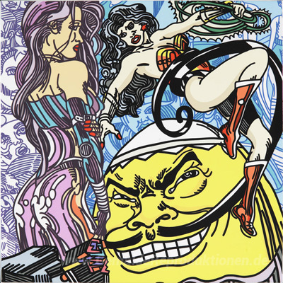 Wir bieten Ihnen eine handgefertigte Reproduktion auf Leinwand des berühmten Kunstwerks 'Eggfu.' von Erro, aus dem Reproduktionsmuseum.