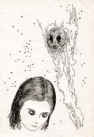 Wir bieten Ihnen eine handgefertigte Reproduktion auf Leinwand des berühmten Kunstwerks 'Ein Mädchen, eine Eule und Treppen 1934' von Toyen, aus dem Reproduktionsmuseum.
