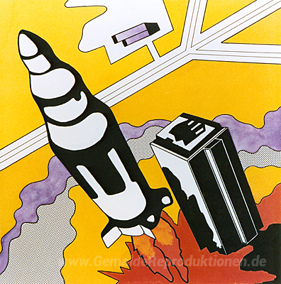Wir bieten Ihnen eine handgefertigte Reproduktion auf Leinwand des berühmten Kunstwerks 'Ein subida do Foguete' von Claudio Tozzi, aus dem Reproduktionsmuseum.