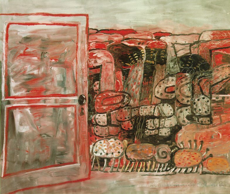 Wir bieten Ihnen eine handgefertigte Reproduktion auf Leinwand des berühmten Kunstwerks 'Eingang' von Philip Guston, aus dem Reproduktionsmuseum.