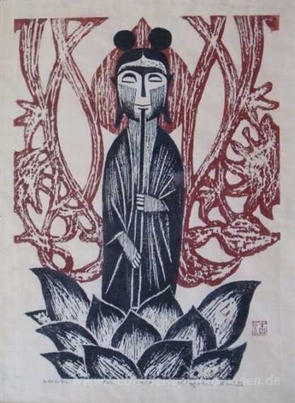 Wir bieten Ihnen eine handgefertigte Reproduktion auf Leinwand des berühmten Kunstwerks 'Engel' von Kiyoshi Saito, aus dem Reproduktionsmuseum.