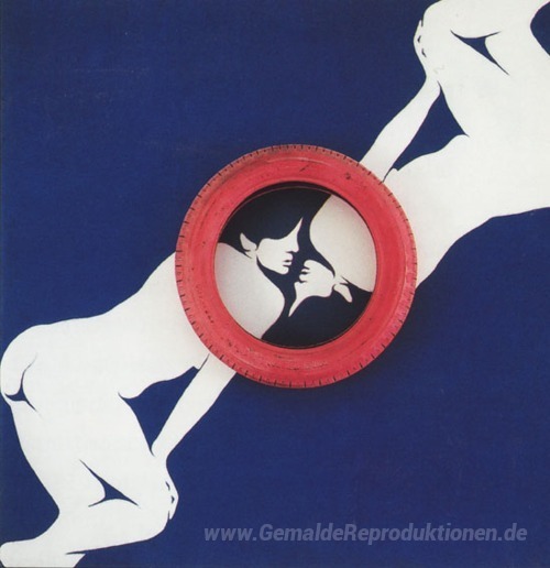 Wir bieten Ihnen eine handgefertigte Reproduktion auf Leinwand des berühmten Kunstwerks 'Erotomobile' von Evelyne Axell, aus dem Reproduktionsmuseum.