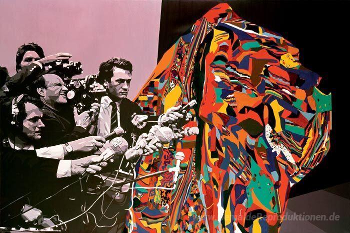 Wir bieten Ihnen eine handgefertigte Reproduktion auf Leinwand des berühmten Kunstwerks 'Existe' von Gerard Fromanger, aus dem Reproduktionsmuseum.