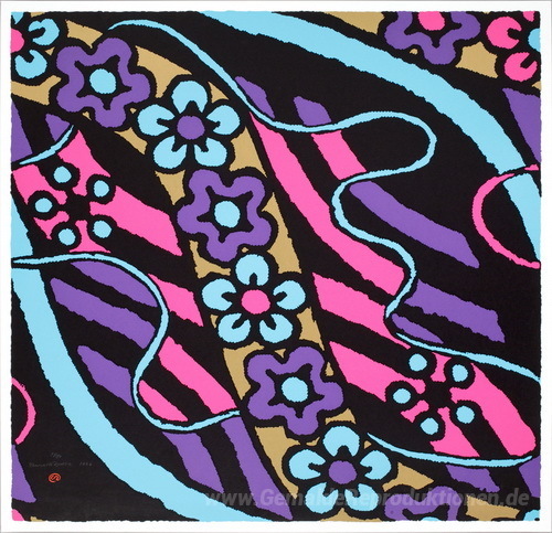 Wir bieten Ihnen eine handgefertigte Reproduktion auf Leinwand des berühmten Kunstwerks 'Färgkomposition med blommor' von Lennart Rodhe, aus dem Reproduktionsmuseum.