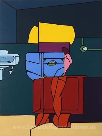 Wir bieten Ihnen eine handgefertigte Reproduktion auf Leinwand des berühmten Kunstwerks 'Figura con valigia' von Valerio Adami, aus dem Reproduktionsmuseum.