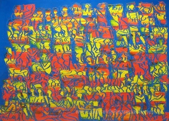 Wir bieten Ihnen eine handgefertigte Reproduktion auf Leinwand des berühmten Kunstwerks 'Figurenkomposition' von Walter Battiss, aus dem Reproduktionsmuseum.