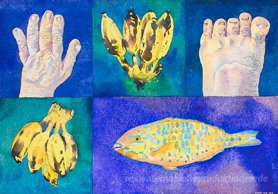 Wir bieten Ihnen eine handgefertigte Reproduktion auf Leinwand des berühmten Kunstwerks 'Fischer' von Walter Battiss, aus dem Reproduktionsmuseum.