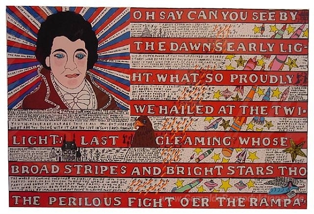 Wir bieten Ihnen eine handgefertigte Reproduktion auf Leinwand des berühmten Kunstwerks 'Flagge' von Howard Finster, aus dem Reproduktionsmuseum.