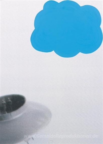 Wir bieten Ihnen eine handgefertigte Reproduktion auf Leinwand des berühmten Kunstwerks 'Fliegende Untertasse und Wolke (blau)' von John Baldessari, aus dem Reproduktionsmuseum.