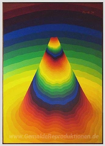 Wir bieten Ihnen eine handgefertigte Reproduktion auf Leinwand des berühmten Kunstwerks 'Fouji Yama (24 Regenbogen Gradation)' von Ay-O, aus dem Reproduktionsmuseum.
