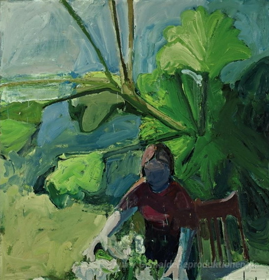 Wir bieten Ihnen eine handgefertigte Reproduktion auf Leinwand des berühmten Kunstwerks 'Frau mit Blumen' von Paul Wonner, aus dem Reproduktionsmuseum.