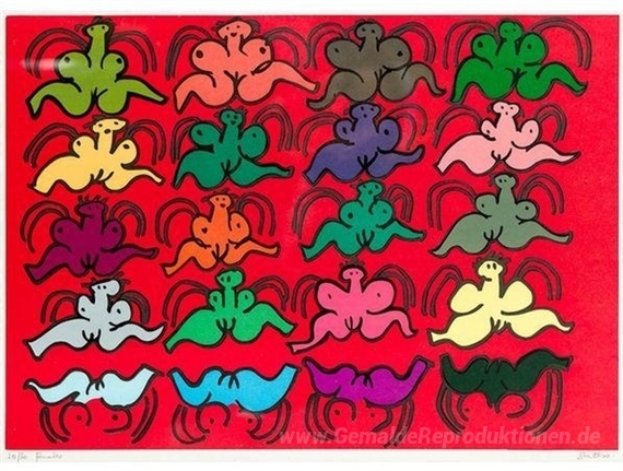 Wir bieten Ihnen eine handgefertigte Reproduktion auf Leinwand des berühmten Kunstwerks 'Frauen' von Walter Battiss, aus dem Reproduktionsmuseum.
