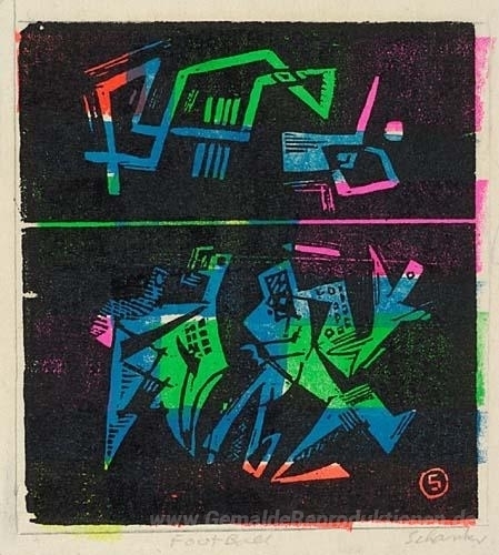 Willkommen in unserer exquisiten Sammlung von Ölgemälden, wo jedes Werk eine Geschichte erzählt und eine Atmosphäre schafft, die Ihre Räume verwandelt. Eines unserer Highlights ist das beeindruckende Gemälde Fußball, erschaffen von dem talentierten Künstler Louis Schanker. Mit seinem einzigartigen Stil und der Verbindung von Abstraktion und Realität bringt Schanker Bewegung und Energie in die Komposition, was das Kunstwerk zu einem spannenden Gesprächsthema in jedem Raum macht.