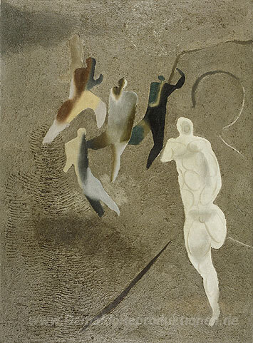 Wir bieten Ihnen eine handgefertigte Reproduktion auf Leinwand des berühmten Kunstwerks 'Fussballplatz' von Willi Baumeister, aus dem Reproduktionsmuseum.