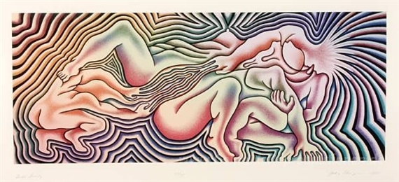 Wir bieten Ihnen eine handgefertigte Reproduktion auf Leinwand des berühmten Kunstwerks 'Geburt Trinity' von Judy Chicago, aus dem Reproduktionsmuseum.