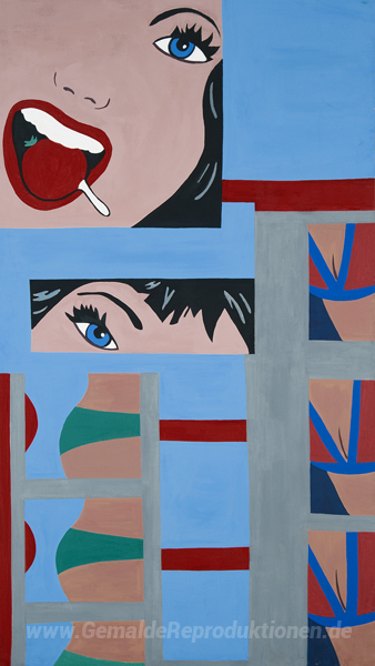 Wir bieten Ihnen eine handgefertigte Reproduktion auf Leinwand des berühmten Kunstwerks 'Gemalt Collage' von Marjorie Strider, aus dem Reproduktionsmuseum.