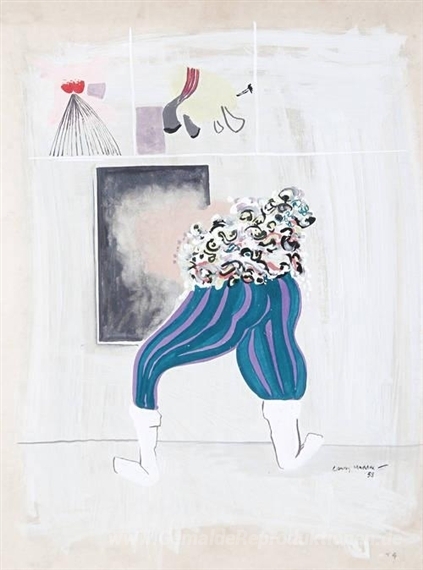 Willkommen in unserer exklusiven Kollektion von Ölgemälden, die die kreative Vision und das künstlerische Handwerk von Meisterwerken wie Gestreiften Hosen von Conroy Maddox verkörpern. Maddox, ein einflussreicher Vertreter der britischen Nachkriegsavantgarde, verbindet in seinen Arbeiten surrealistische Elemente mit einer einzigartigen Farbpalette, die Ihren Wohnraum mit einem Hauch von Eleganz und Dynamik bereichert.