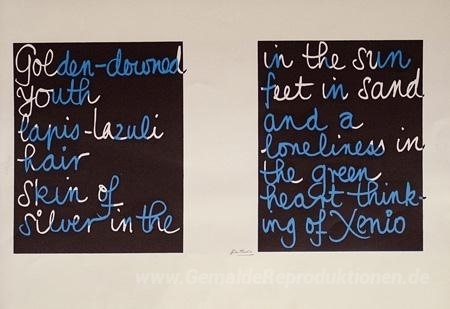 Wir bieten Ihnen eine handgefertigte Reproduktion auf Leinwand des berühmten Kunstwerks 'Goldene abgeschossenen Jugend' von Walter Battiss, aus dem Reproduktionsmuseum.