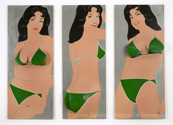 Wir bieten Ihnen eine handgefertigte Reproduktion auf Leinwand des berühmten Kunstwerks 'Grün Triptychon' von Marjorie Strider, aus dem Reproduktionsmuseum.