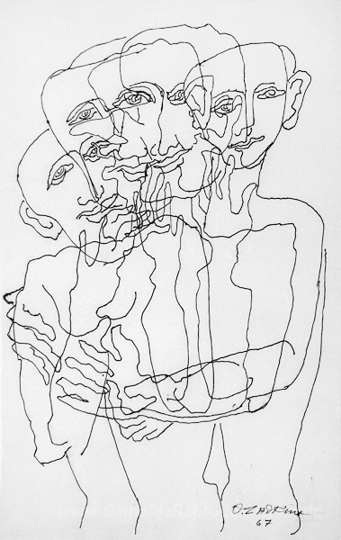 Wir bieten Ihnen eine handgefertigte Reproduktion auf Leinwand des berühmten Kunstwerks 'Gruppe zu den vier Flächen' von Ossip Zadkine, aus dem Reproduktionsmuseum.