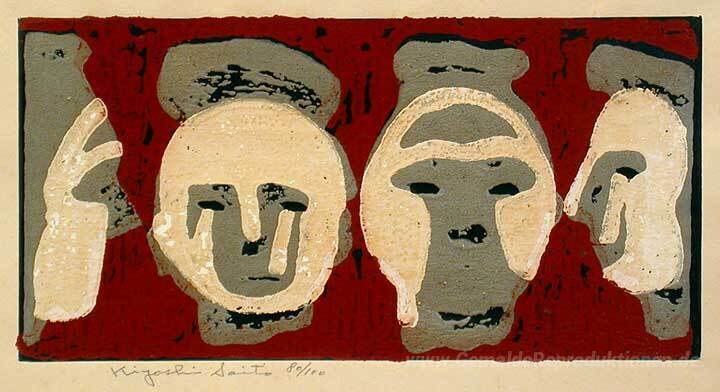Wir bieten Ihnen eine handgefertigte Reproduktion auf Leinwand des berühmten Kunstwerks 'Haniwa' von Kiyoshi Saito, aus dem Reproduktionsmuseum.