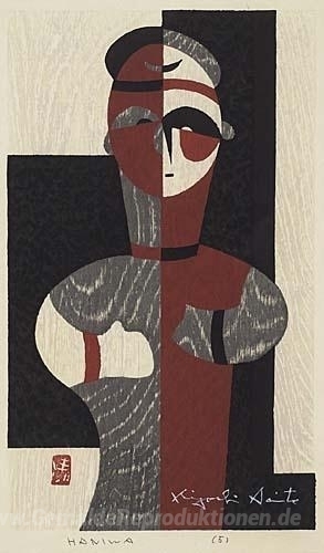 Wir bieten Ihnen eine handgefertigte Reproduktion auf Leinwand des berühmten Kunstwerks 'Haniwa' von Kiyoshi Saito, aus dem Reproduktionsmuseum.