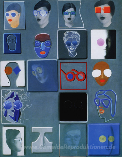Wir bieten Ihnen eine handgefertigte Reproduktion auf Leinwand des berühmten Kunstwerks 'Harem miope' von Jorge Martins, aus dem Reproduktionsmuseum.