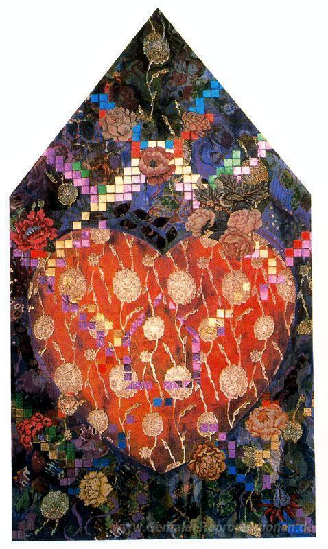 Wir bieten Ihnen eine handgefertigte Reproduktion auf Leinwand des berühmten Kunstwerks 'Heartfelt' von Miriam Schapiro, aus dem Reproduktionsmuseum.