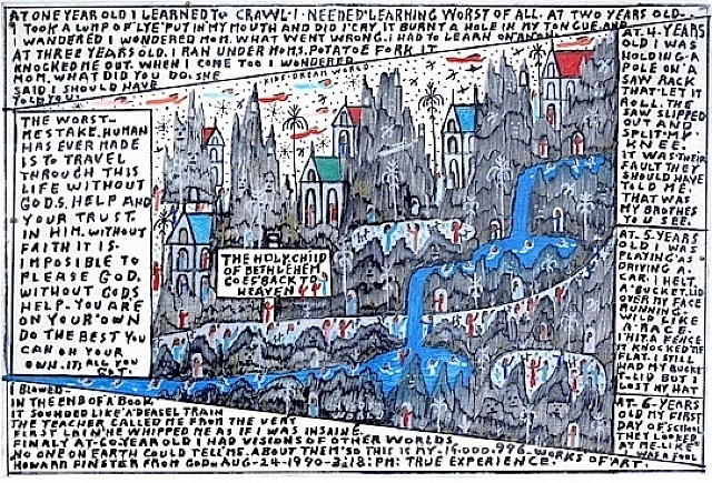 Wir bieten Ihnen eine handgefertigte Reproduktion auf Leinwand des berühmten Kunstwerks 'Heilige Kind von Bethlehem (Kinder Dream World)' von Howard Finster, aus dem Reproduktionsmuseum.