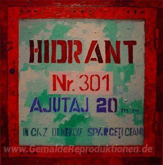 Wir bieten Ihnen eine handgefertigte Reproduktion auf Leinwand des berühmten Kunstwerks 'Hidrant Nr. 301' von Florin Ciulache, aus dem Reproduktionsmuseum.