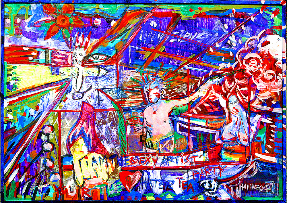 Wir bieten Ihnen eine handgefertigte Reproduktion auf Leinwand des berühmten Kunstwerks 'Ich bin der Sexy Künstler' von David Michael Hinnebusch, aus dem Reproduktionsmuseum.