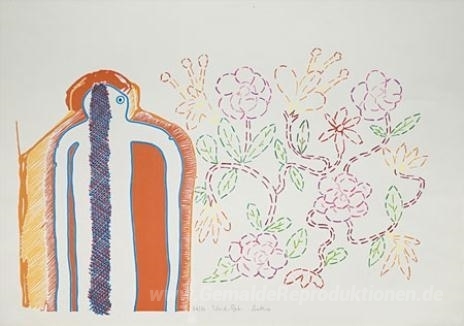 Wir bieten Ihnen eine handgefertigte Reproduktion auf Leinwand des berühmten Kunstwerks 'Insel Gottes' von Walter Battiss, aus dem Reproduktionsmuseum.