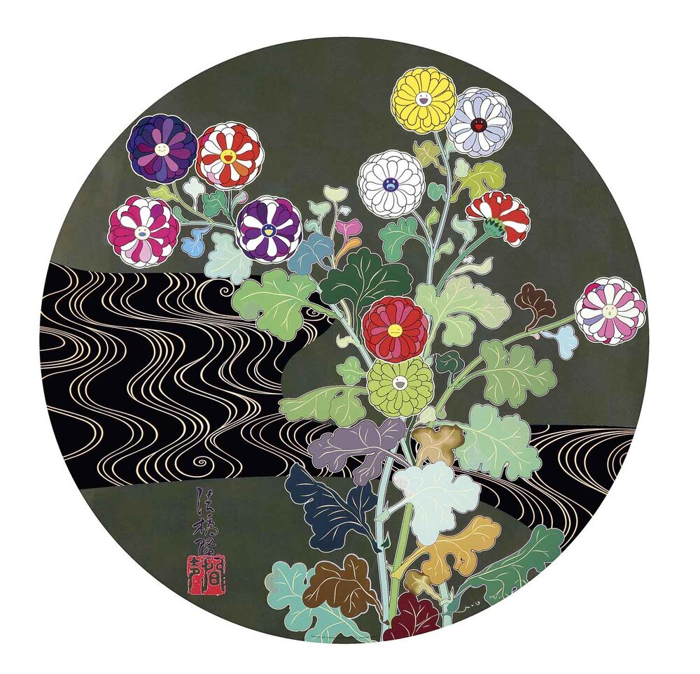 Wir bieten Ihnen eine handgefertigte Reproduktion auf Leinwand des berühmten Kunstwerks 'Kansei Korin Gold-' von Takashi Murakami, aus dem Reproduktionsmuseum.