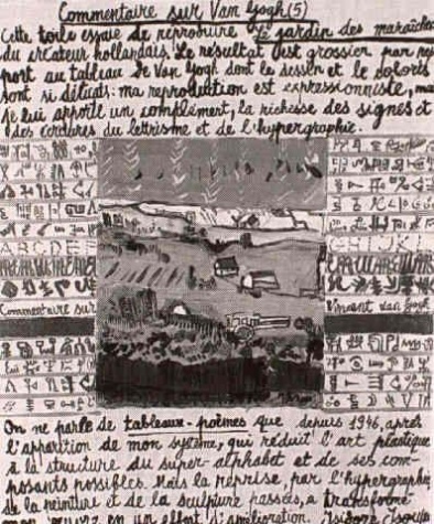 Wir bieten Ihnen eine handgefertigte Reproduktion auf Leinwand des berühmten Kunstwerks 'Kommentar zum Van Gogh (V.)' von Isidore Isou, aus dem Reproduktionsmuseum.