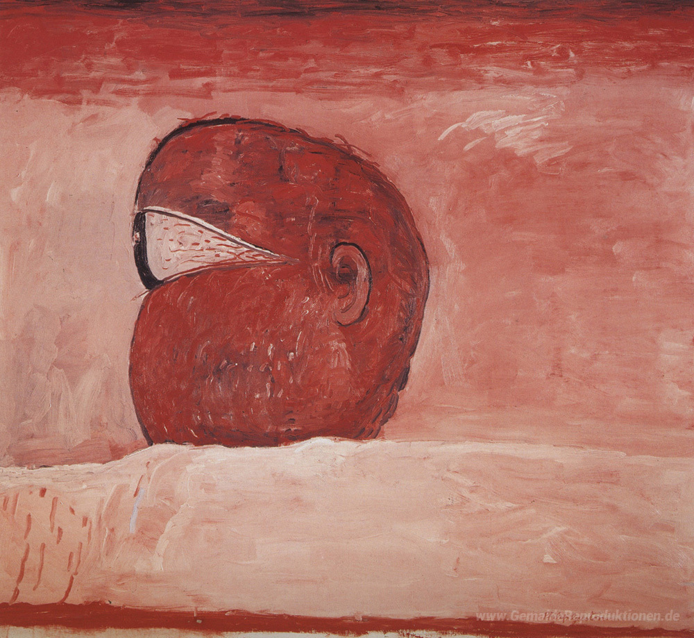 Wir bieten Ihnen eine handgefertigte Reproduktion auf Leinwand des berühmten Kunstwerks 'Kopf' von Philip Guston, aus dem Reproduktionsmuseum.