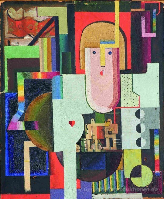 Wir bieten Ihnen eine handgefertigte Reproduktion auf Leinwand des berühmten Kunstwerks 'Kopf und zwei Boxer' von Victor Brauner, aus dem Reproduktionsmuseum.