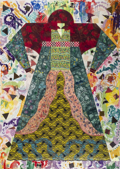 Wir bieten Ihnen eine handgefertigte Reproduktion auf Leinwand des berühmten Kunstwerks 'Kostüm für Mutter Erde' von Miriam Schapiro, aus dem Reproduktionsmuseum.
