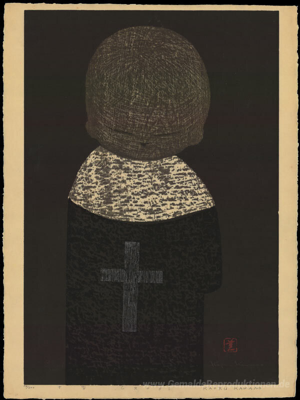 Wir bieten Ihnen eine handgefertigte Reproduktion auf Leinwand des berühmten Kunstwerks 'Kreuz' von Kaoru Kawano, aus dem Reproduktionsmuseum.