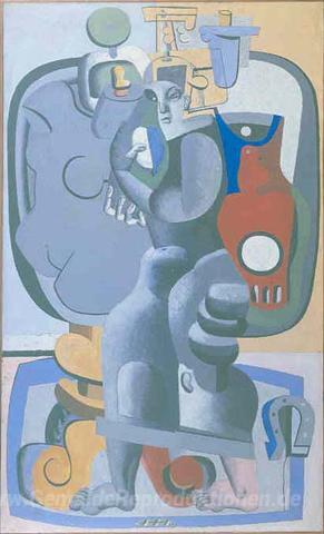 Wir bieten Ihnen eine handgefertigte Reproduktion auf Leinwand des berühmten Kunstwerks 'La femme au guéridon et au fer à cheval' von Le Corbusier, aus dem Reproduktionsmuseum.