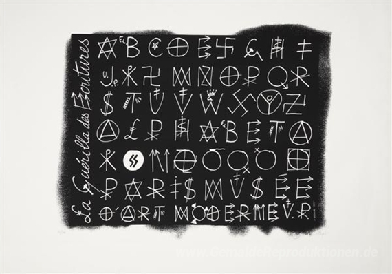 Wir bieten Ihnen eine handgefertigte Reproduktion auf Leinwand des berühmten Kunstwerks 'La guérilla des écritures' von Jacques Villeglé, aus dem Reproduktionsmuseum.