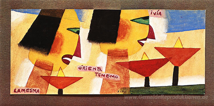 Wir bieten Ihnen eine handgefertigte Reproduktion auf Leinwand des berühmten Kunstwerks 'La Mesma Orienta' von Xul Solar, aus dem Reproduktionsmuseum.