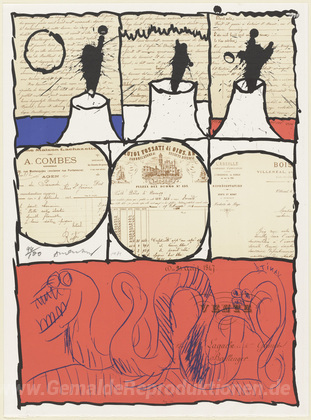 Wir bieten Ihnen eine handgefertigte Reproduktion auf Leinwand des berühmten Kunstwerks 'Lagache Verkauf' von Pierre Alechinsky, aus dem Reproduktionsmuseum.