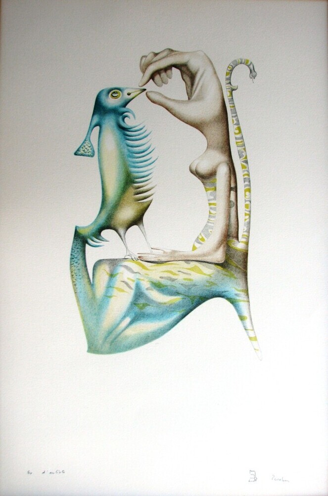 Wir bieten Ihnen eine handgefertigte Reproduktion auf Leinwand des berühmten Kunstwerks 'L'alphabet 5 (Gimel)' von Jules Perahim, aus dem Reproduktionsmuseum.