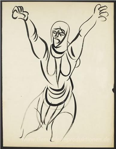 Wir bieten Ihnen eine handgefertigte Reproduktion auf Leinwand des berühmten Kunstwerks 'Lament / Nomads' von Abidin Dino, aus dem Reproduktionsmuseum.