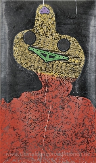 Wir bieten Ihnen eine handgefertigte Reproduktion auf Leinwand des berühmten Kunstwerks 'Le maillot rouge' von Enrico Baj, aus dem Reproduktionsmuseum.