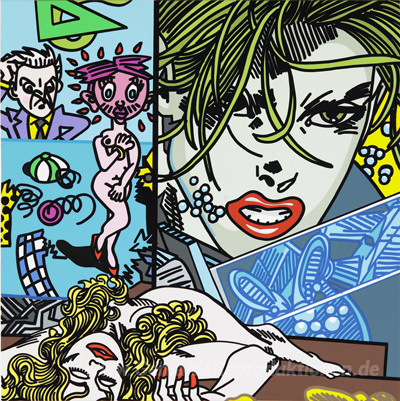 Wir bieten Ihnen eine handgefertigte Reproduktion auf Leinwand des berühmten Kunstwerks 'Le Mirroir.' von Erro, aus dem Reproduktionsmuseum.