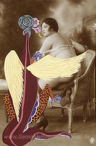 Wir bieten Ihnen eine handgefertigte Reproduktion auf Leinwand des berühmten Kunstwerks 'Le Rousselier Volant (von La Vie Amoureuse des Spumifères)' von Georges Hugnet, aus dem Reproduktionsmuseum.